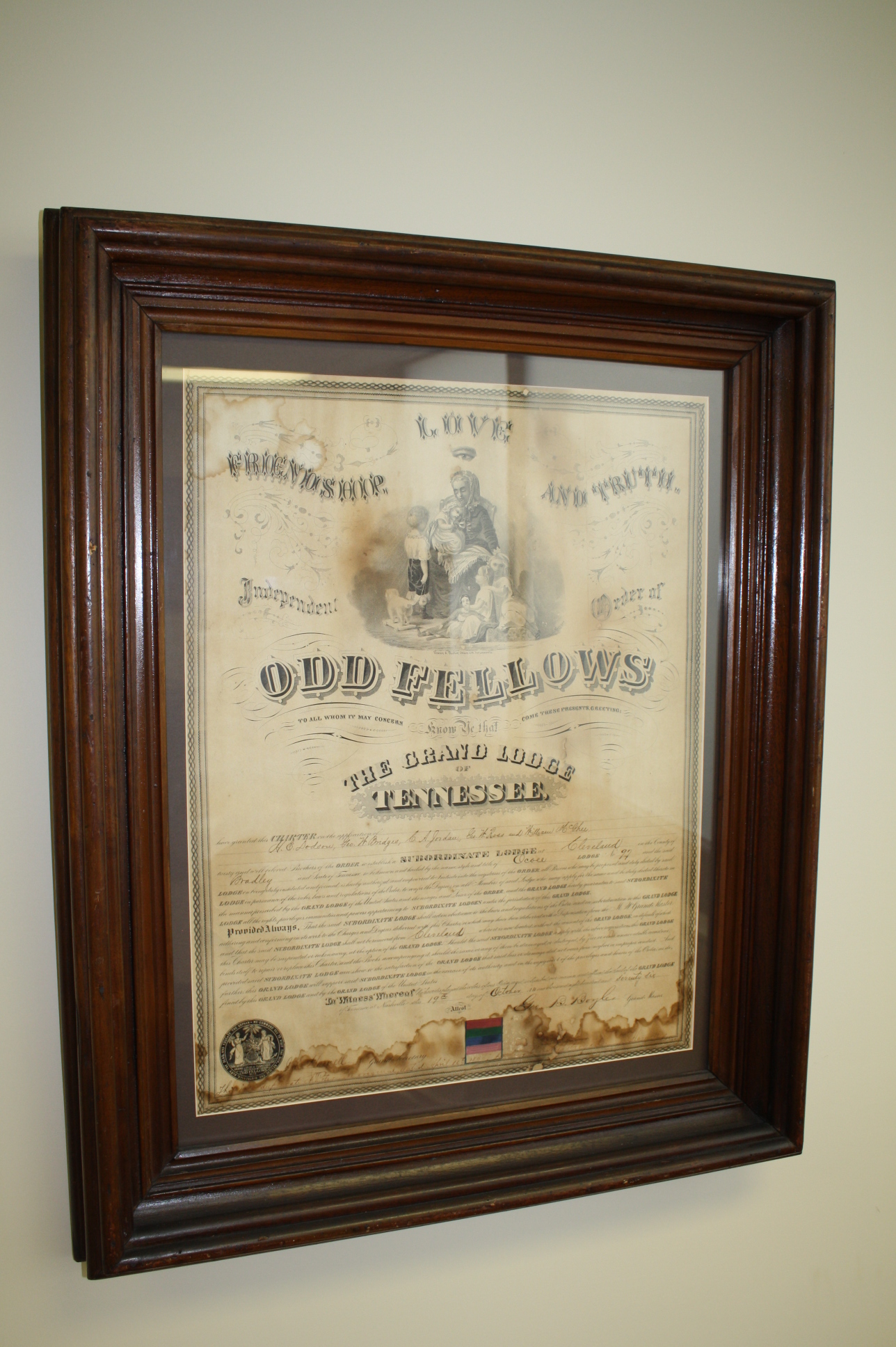 WITHIN 15 YEARS of the organization of the Grand Lodge of Tennessee, the 97th lodge in Tennessee was chartered at Cleveland on April 10, 1856. The lodge was named “Ocoee,” which is an Indian word meaning “apricot vine place.” Cleveland and Bradley County were part of the Ocoee District lands purchased from the Cherokee Indians. Bradley County was created from the Ocoee District in 1836. Along with the Lodge, several other early Cleveland businesses bore the name “Ocoee.” These included a newspaper, a bank, and a hotel along with the “main” street in town.